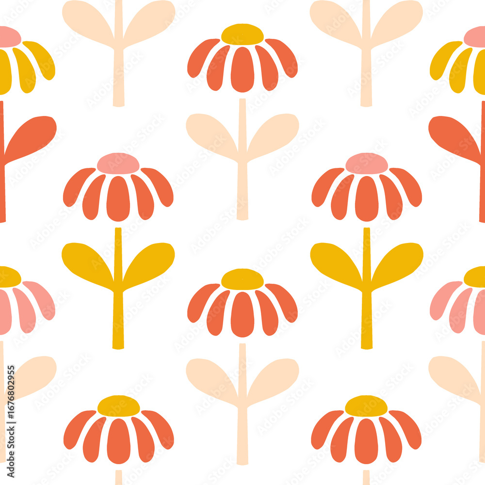 Seamless Daisy Flower Pattern in Yellow and Orange – Scandin Wallpaper