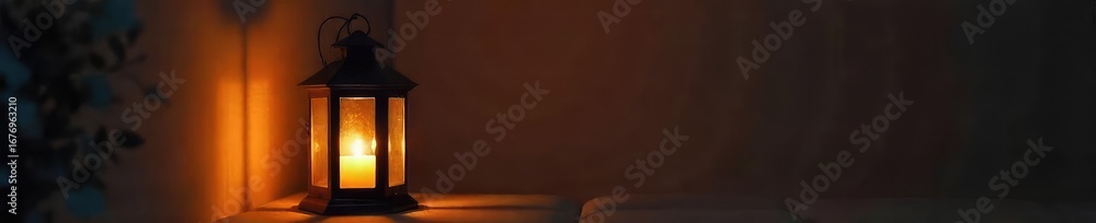 Stylish modern lantern illuminating a dark room casting warm Wallpaper