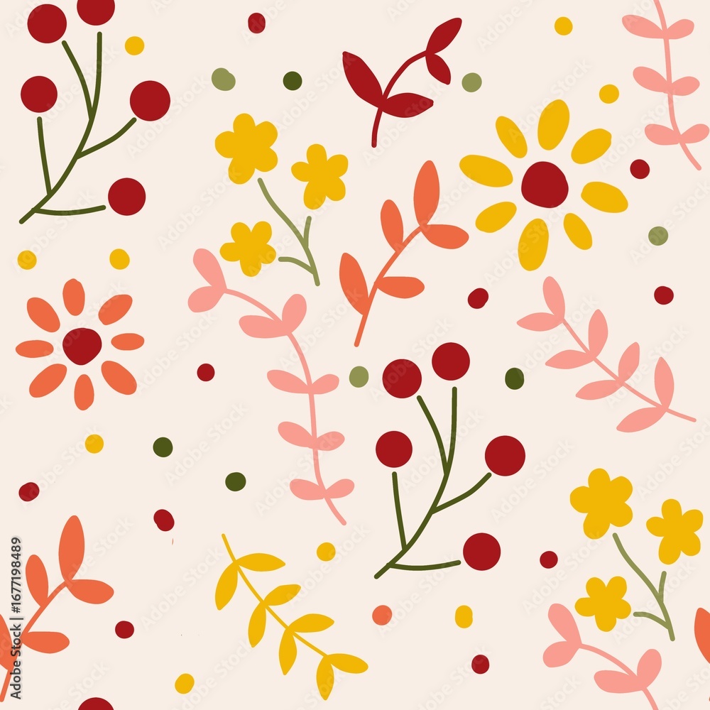 Seamless Floral Pattern With Colorful Flowers And Leaves Wallpaper Mural - Decorly Solutions | Decorly Solutions