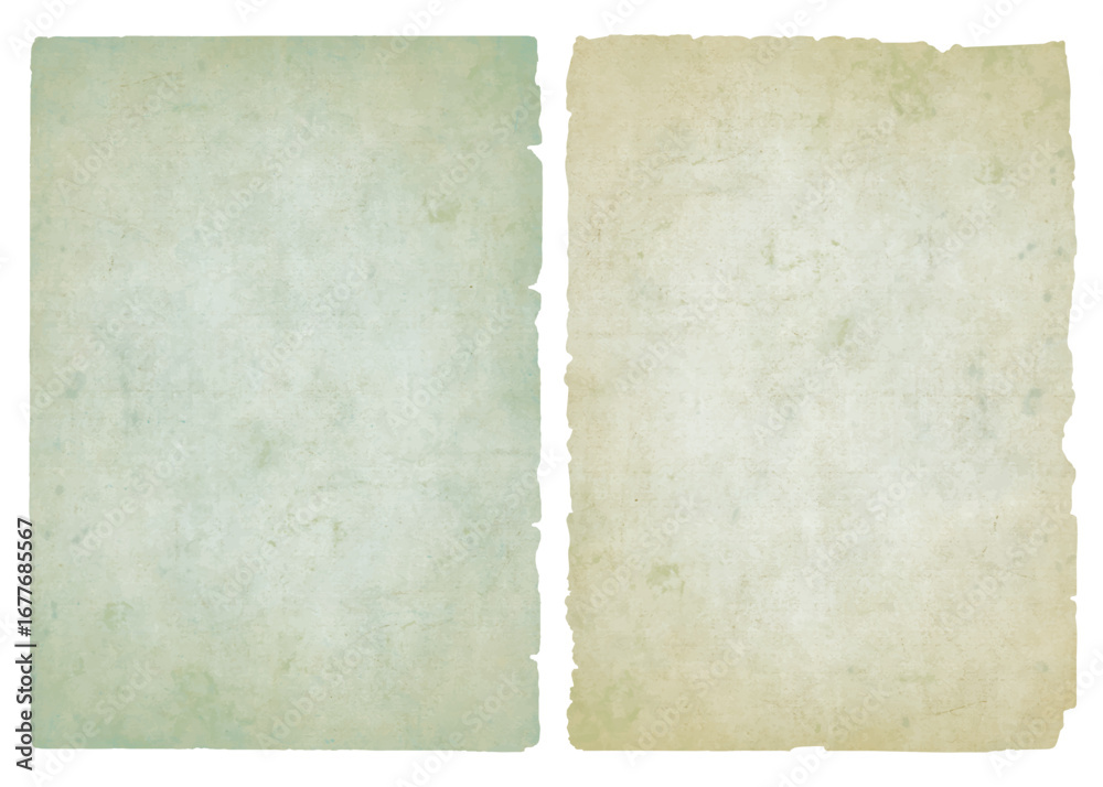 Vintage old paper sheets or parchment with ripped torn edges. Antique ragged worn paper background textures