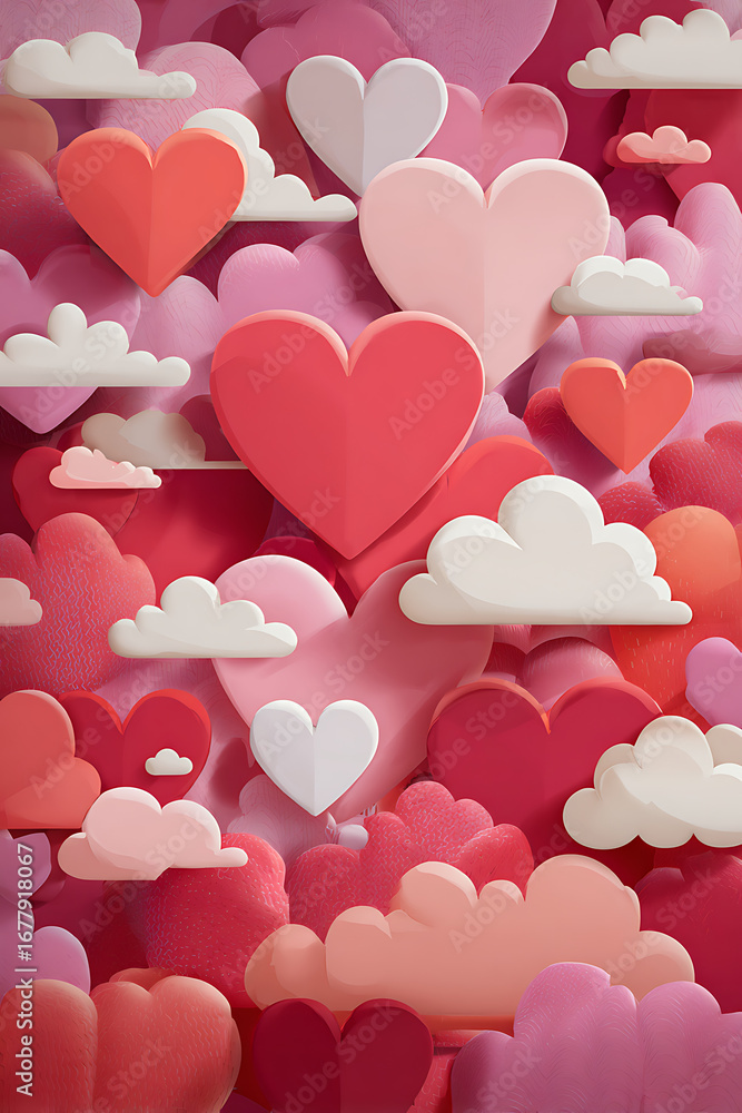Colorful Hearts And Clouds In A Whimsical Arrangement Wallpaper Mural - Decorly Solutions | Decorly Solutions