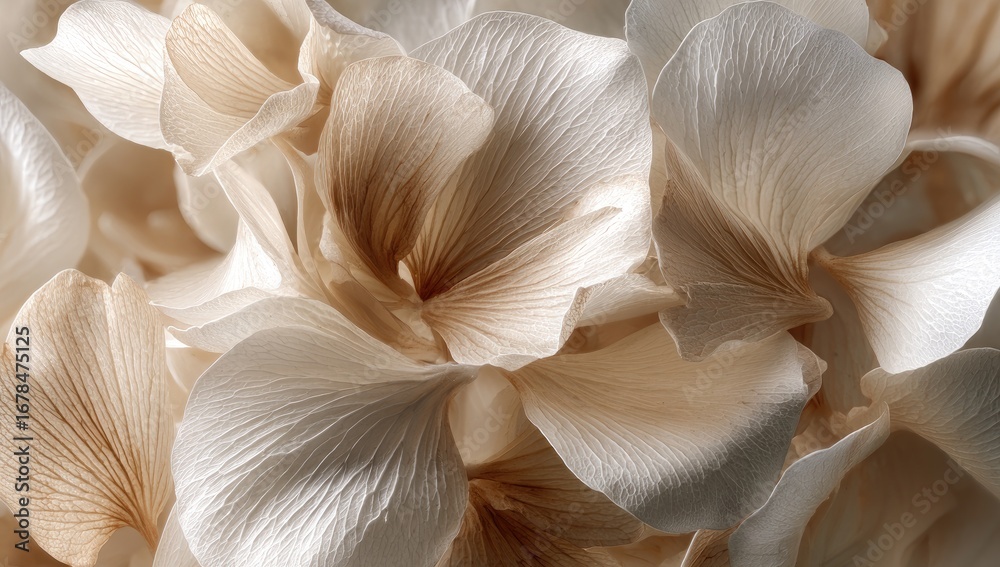 Beautiful Beige Flower Petals: A Stunning Macro Image Highlighting Transparent Leaves and Their Natural Textures, Ideal for Wallpaper, Botanical Themes, and Nature-Inspired Decor