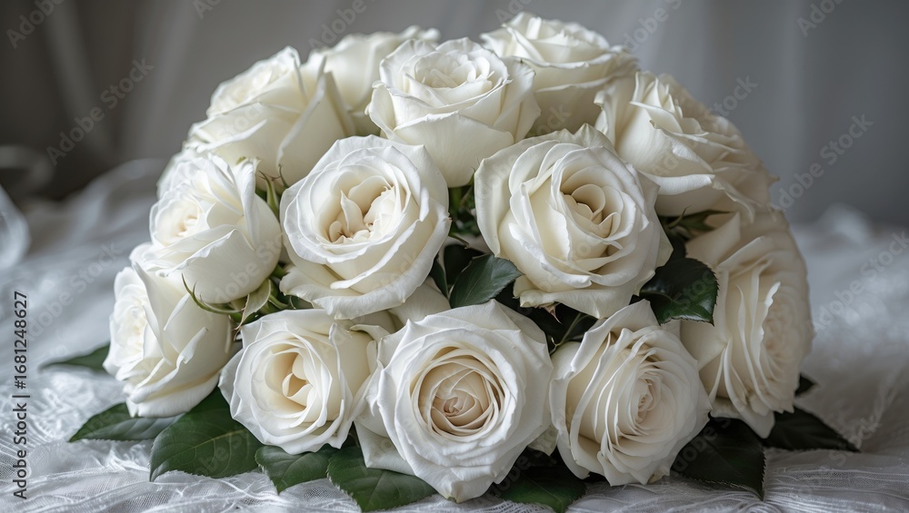 Beautiful white roses backdrop for wedding bouquet display Wallpaper