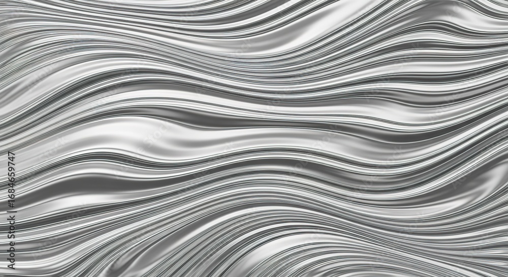 Abstract Silver Waves: A Fluid Metallic Textured and Reflect Wallpaper