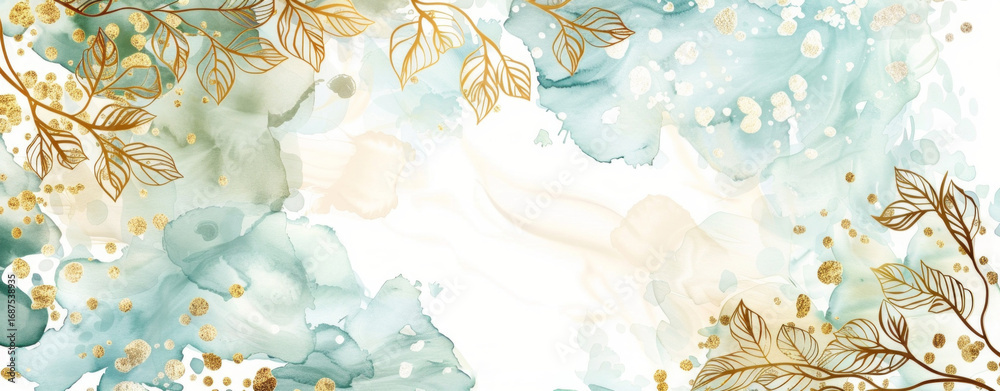 Floral Background Blue And Green Watercolor Stains Wallpaper Mural - Decorly Solutions | Decorly Solutions