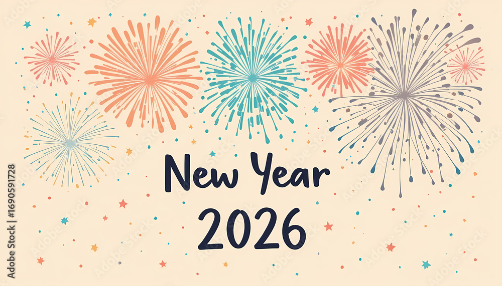 New Year 2026 Fireworks Celebration Background Colorful Bursts Wallpaper Mural - Decorly Solutions | Decorly Solutions