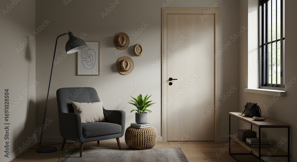 Modern Living Room Corner With Armchair Floor Lamp Wallpaper Mural - Decorly Solutions | Decorly Solutions