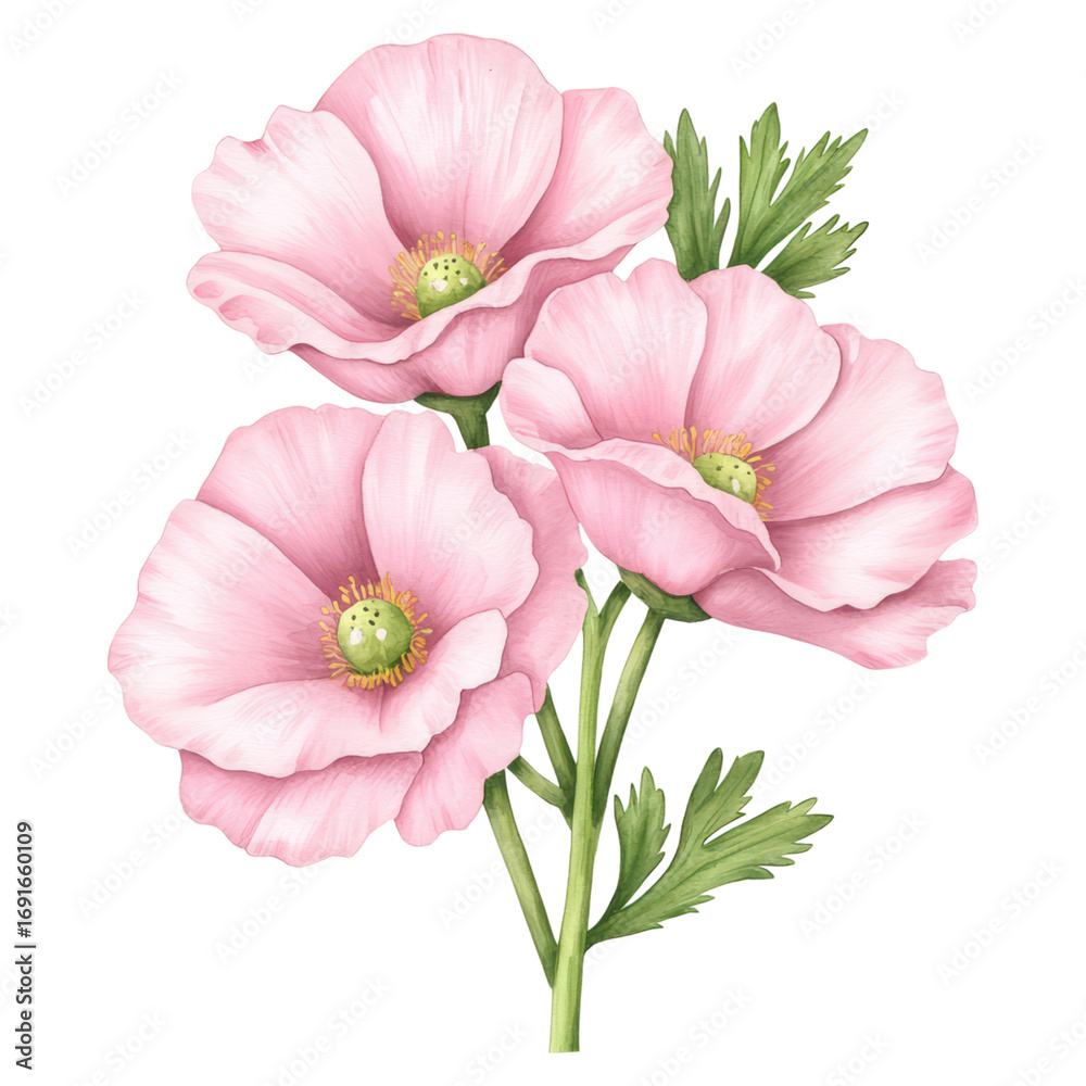 Delicate Pink Poppies With Green Foliage In Elegant Wallpaper Mural - Decorly Solutions | Decorly Solutions