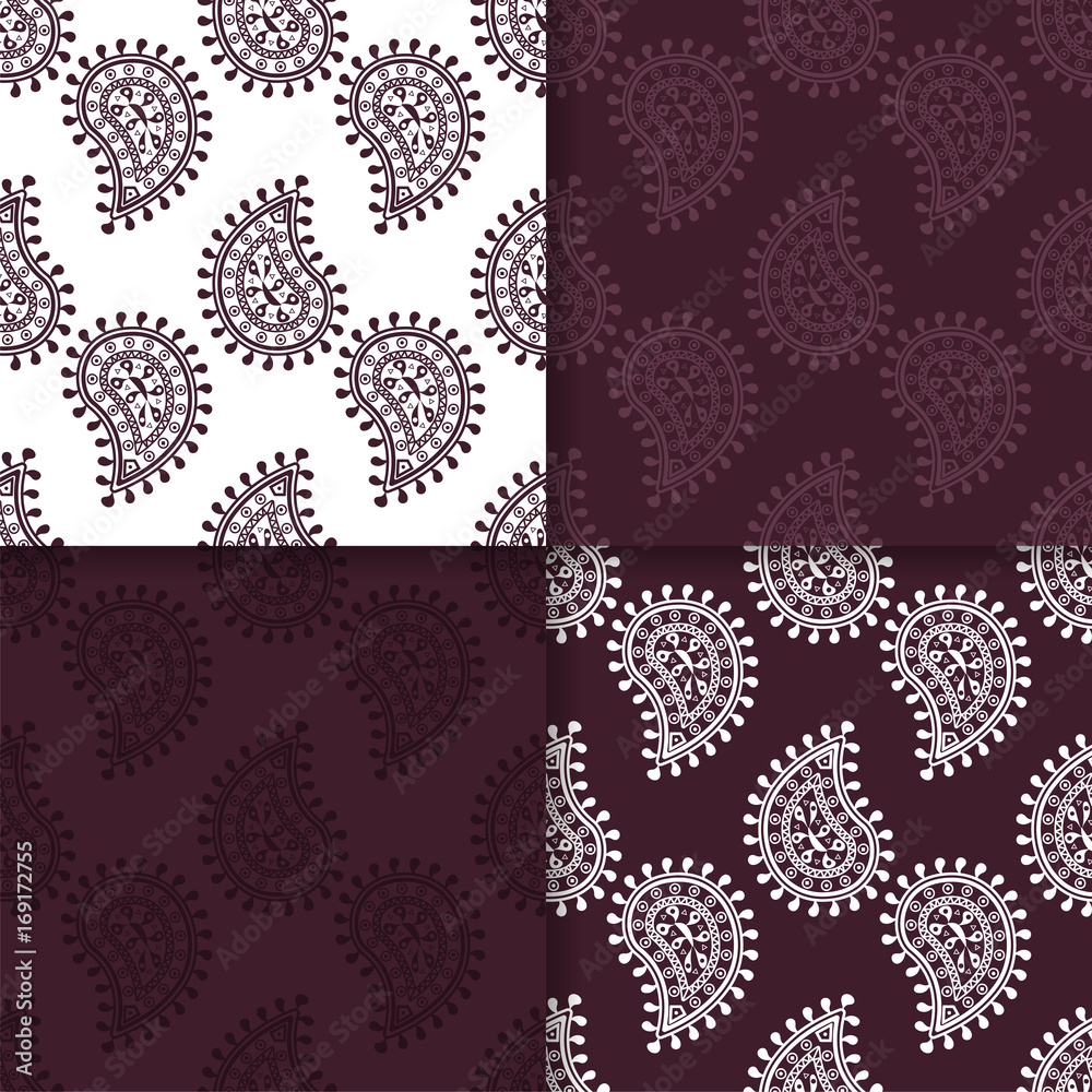 Maroon Set Of Paisley Ornaments Seamless Patterns Wallpaper Mural - Decorly Solutions | Decorly Solutions