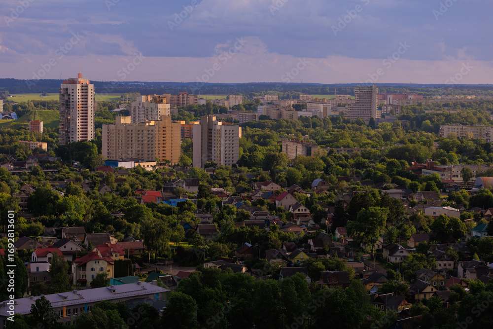 An Artistic Shot Of A Modern City Skyline During Twilight, Highlighting The Contrast Between Nature And Urban Architecture.