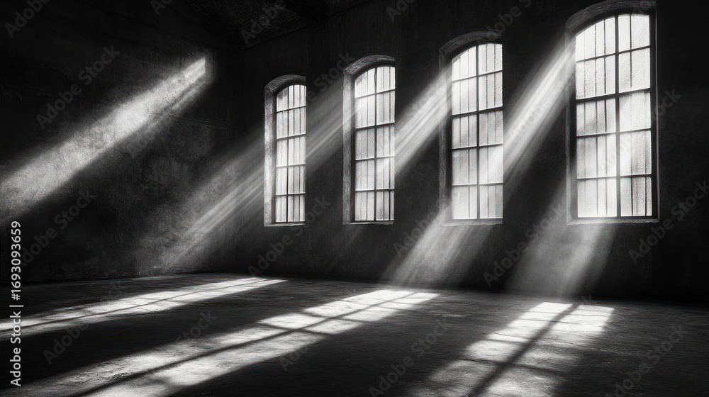 Rays Of Light Cascade Through Arched Windows Illuminating Wallpaper Mural - Decorly Solutions | Decorly Solutions