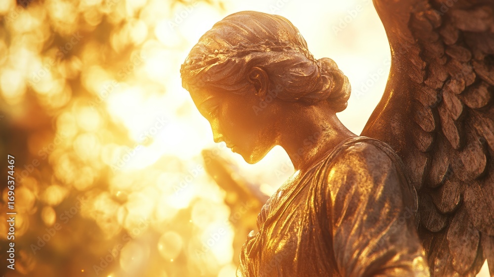 Golden Angel Sculpture Surrounded By Warm Glowing Light Wallpaper Mural - Decorly Solutions | Decorly Solutions