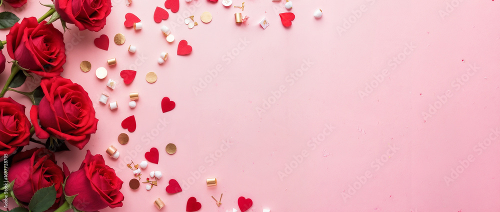 Frame Made Of Rose Flowers Confetti On Pink Wallpaper Mural - Decorly Solutions | Decorly Solutions