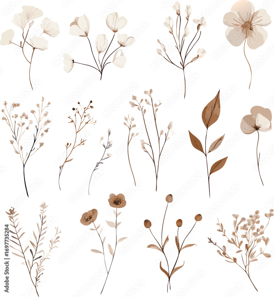 Collection of delicate watercolor botanical illustrations fe Wallpaper