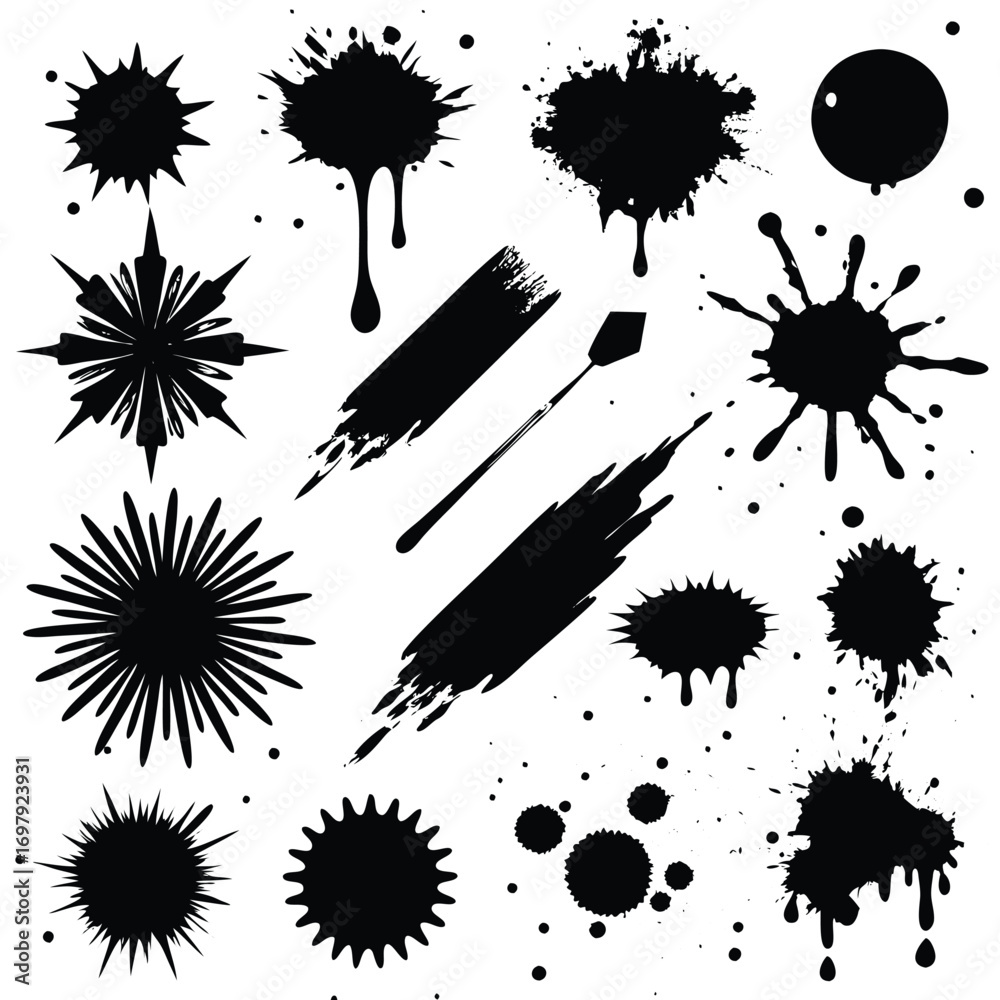 Black Paint Splatters And Brush Strokes On White Wallpaper Mural - Decorly Solutions | Decorly Solutions