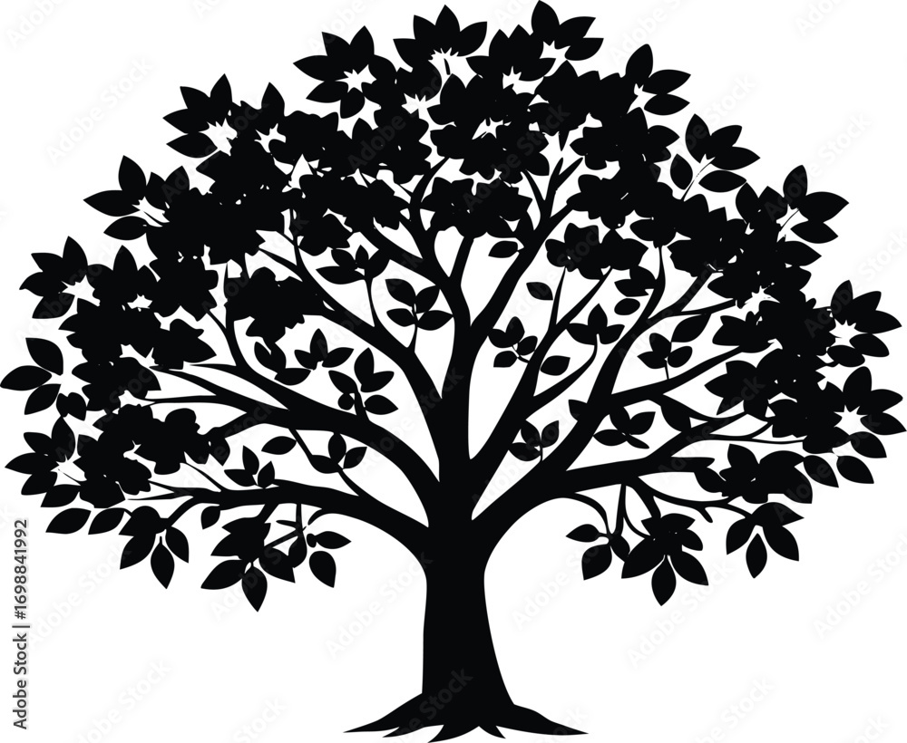 Hawthorn Tree Silhouette Illustration | Hawthorn Tree Outline Wallpaper Mural - Decorly Solutions | Decorly Solutions