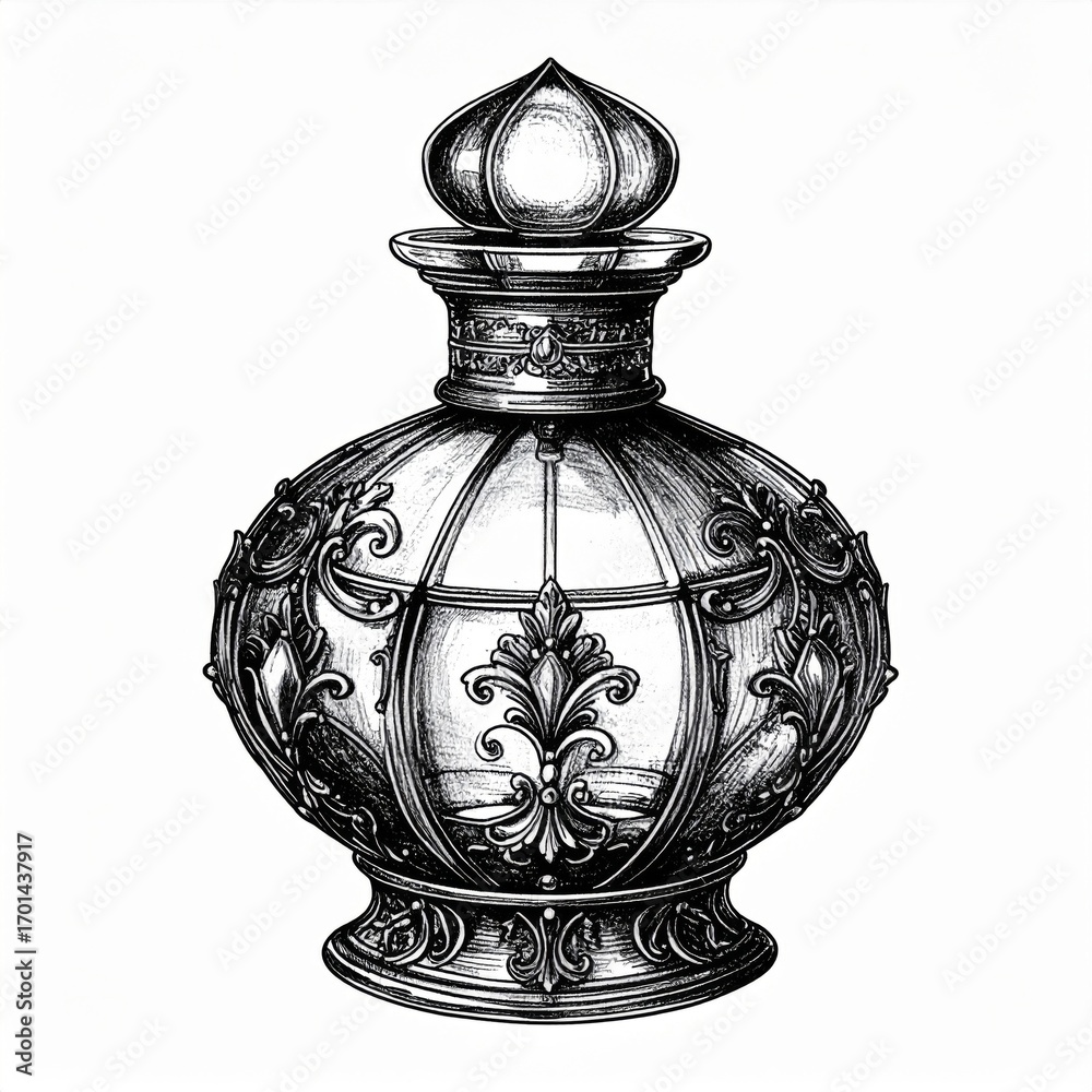 Elegant Ornate Glass Perfume Bottle Vintage Style Crystal Floral Design Luxury Fragrance