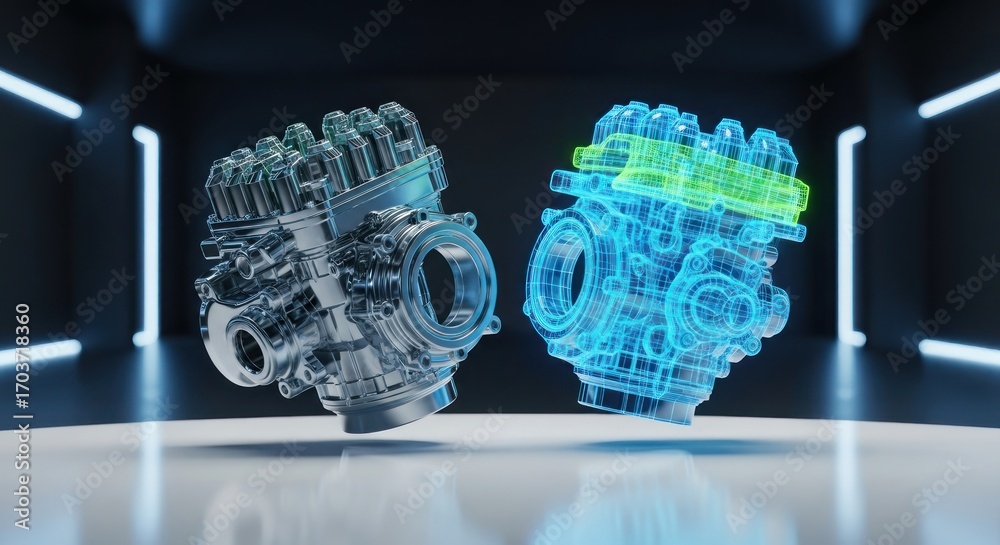 Advanced Engineering Concept With A 3d Engine Model Wallpaper Mural - Decorly Solutions | Decorly Solutions