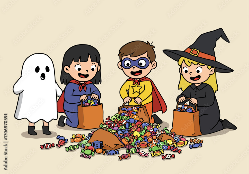 Kids Comparing Halloween Candy Haul Wallpaper