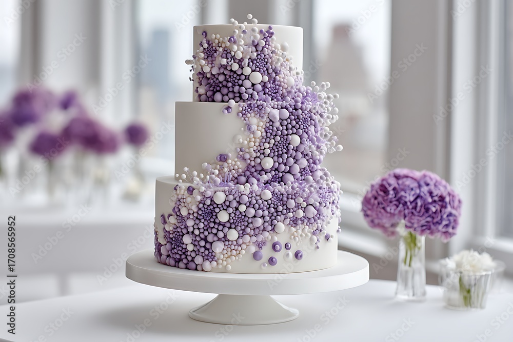 A Stunning White Wedding Cake Decorated With Delicate Wallpaper Mural - Decorly Solutions | Decorly Solutions
