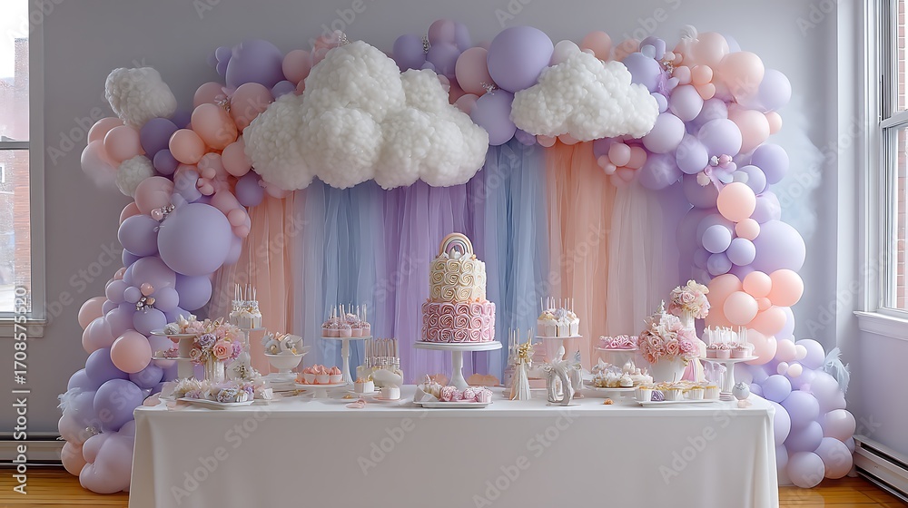 Delightful pink dessert showcase sweet celebration venue food display charming ambiance festive perspective whimsical treats