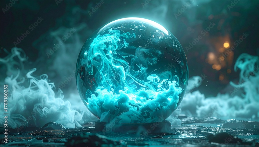 A Glowing Crystal Ball Surrounded By Swirling Blue Wallpaper Mural - Decorly Solutions | Decorly Solutions