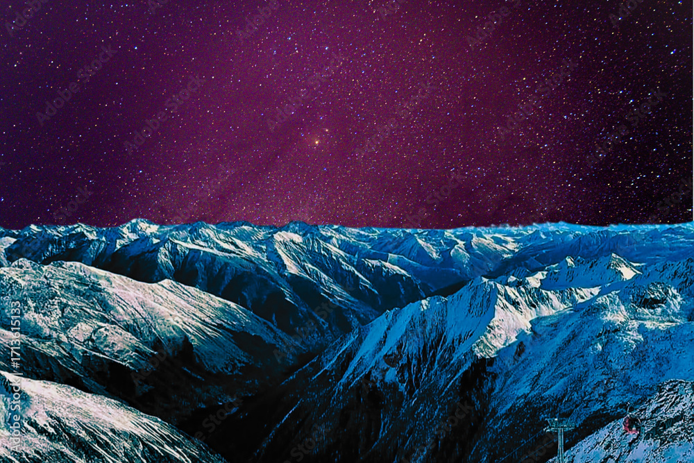 Night View Of Snowy Mountain Range And Milky Wallpaper Mural - Decorly Solutions | Decorly Solutions