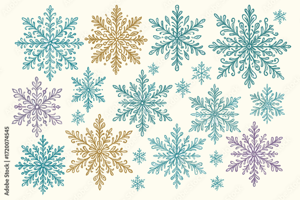 Decorative Snowflakes In Various Colors And Designs Wintery Wallpaper Mural - Decorly Solutions | Decorly Solutions