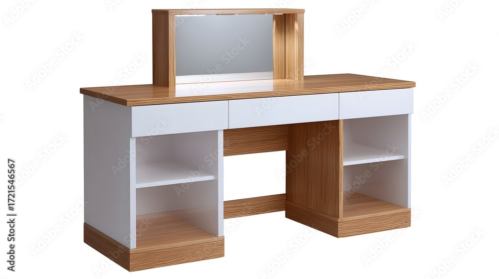 Modern Home Office Desk With Drawers, Isolated On A White Background