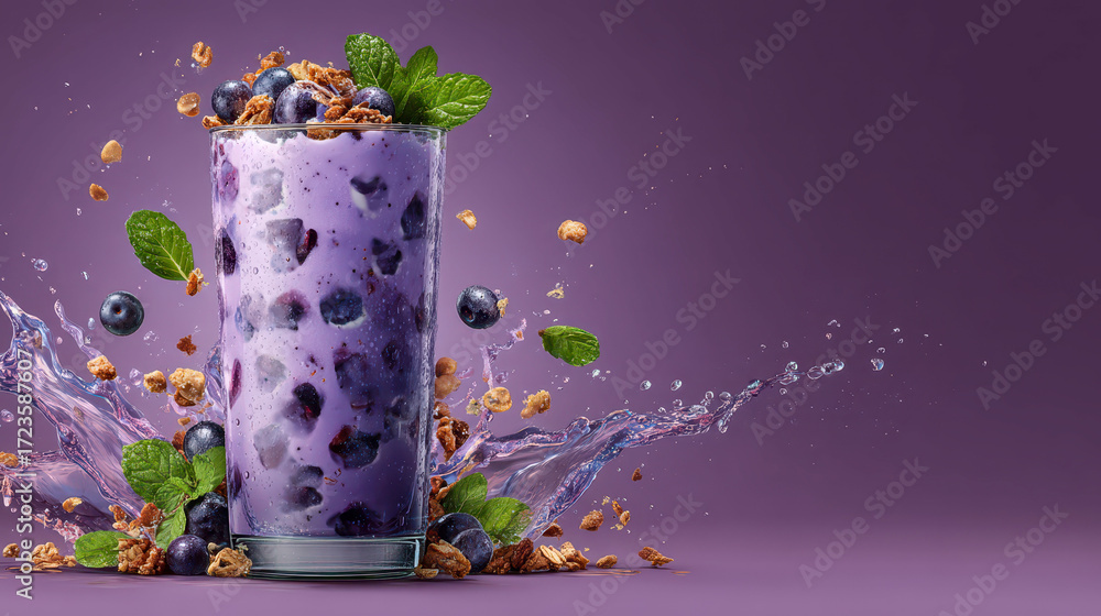 A Glass Of Purple Drink With Blueberries And Wallpaper Mural - Decorly Solutions | Decorly Solutions