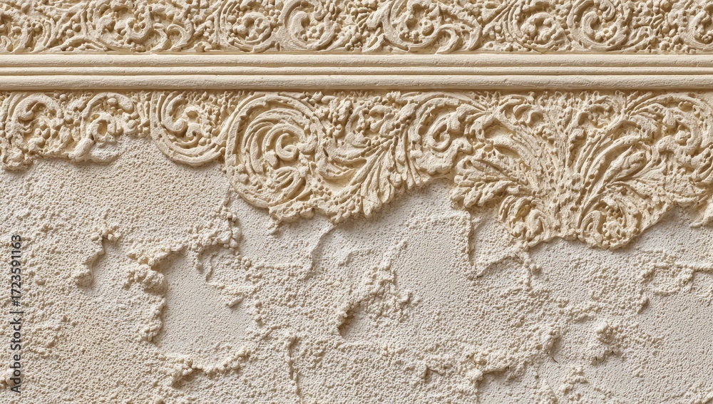 Beige textured wall with ornate relief design