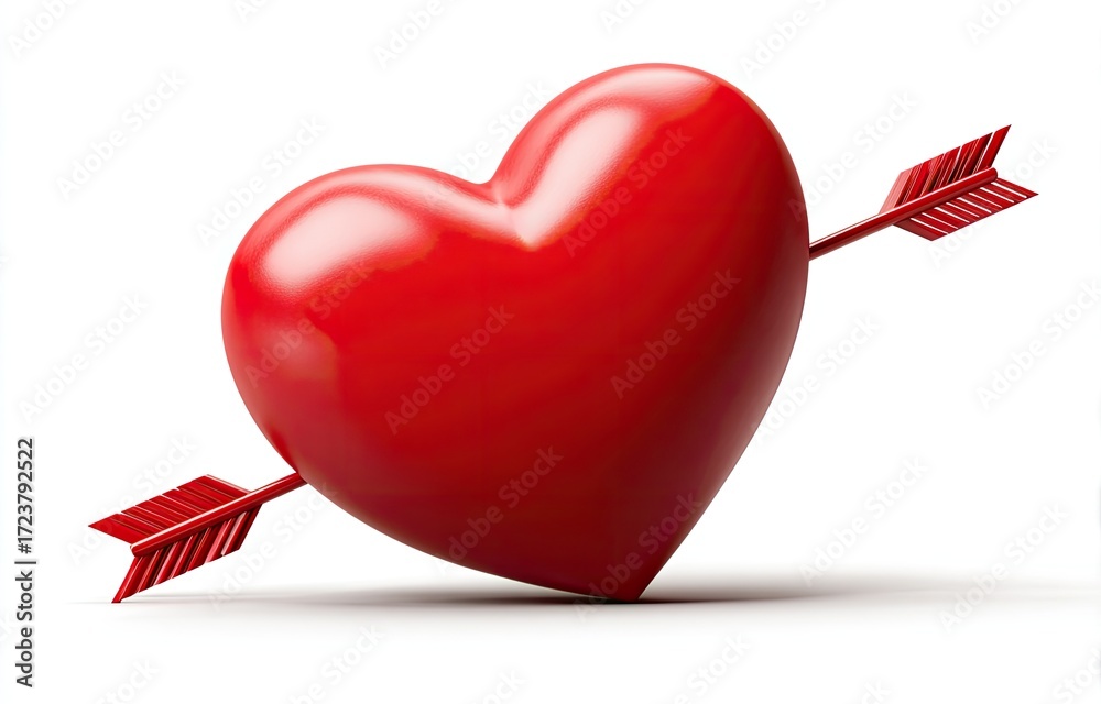 A glossy vibrant red heart pierced by a red arrow Wallpaper