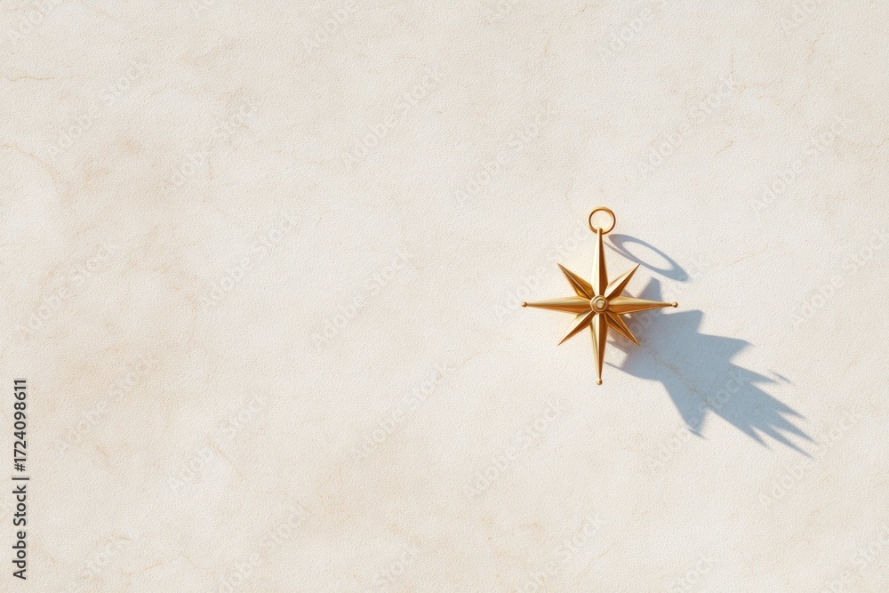 Golden compass resting on textured surface casting delicate Wallpaper