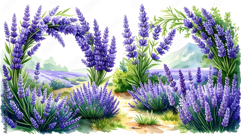 Lavender fields with arches Aquarelle style Wallpaper