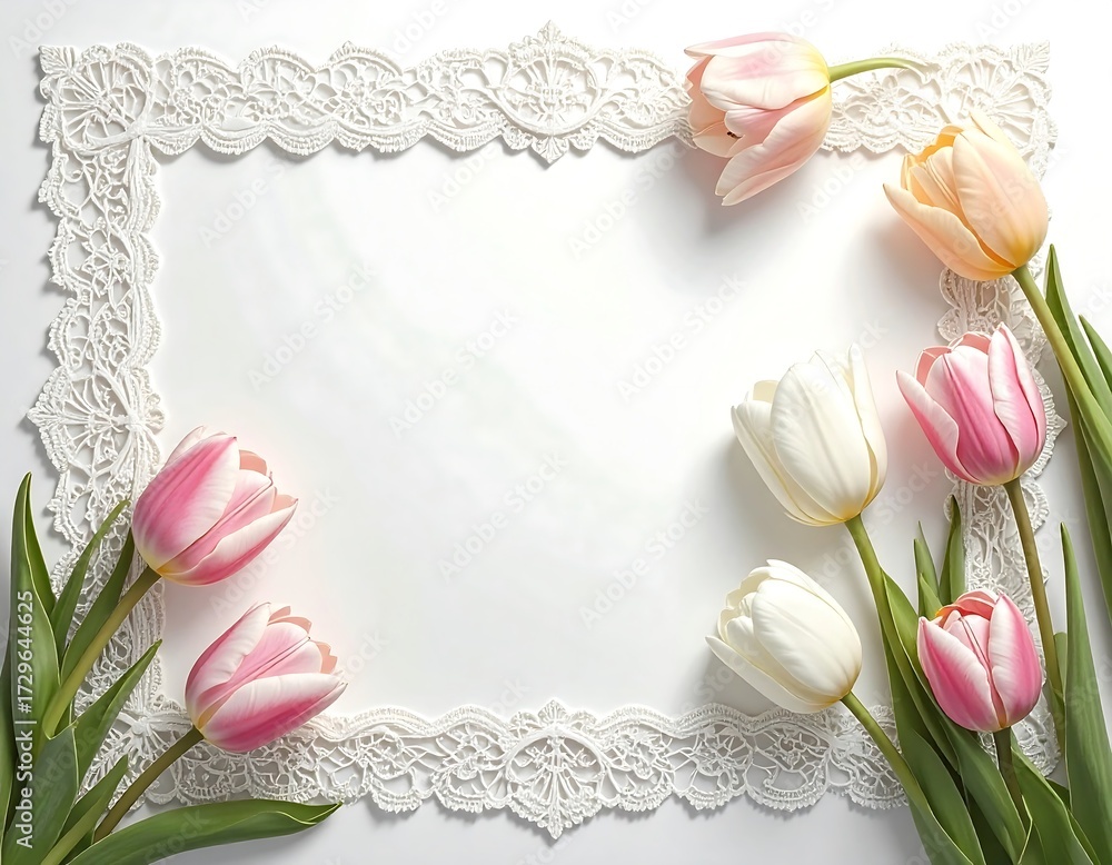 Tulips and Lace Frame with Blank Space for Invitations and G Wallpaper