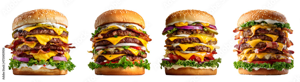 Stacked Cheeseburgers With Beef And Toppings Isolated On Wallpaper Mural - Decorly Solutions | Decorly Solutions