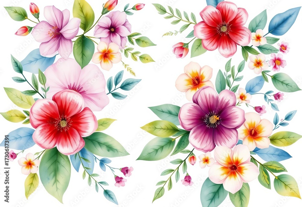 Vibrant Watercolor Floral Set Delicate Blooms & Lush Wallpaper Mural - Decorly Solutions | Decorly Solutions