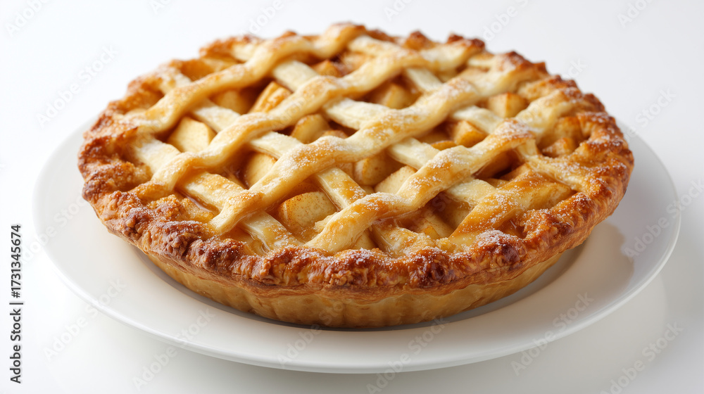 白い皿に置かれた焼きたての艶やかな格子状のパイ生地が特徴的な伝統的なアップルパイ Wallpaper Mural - Decorly Solutions | Decorly Solutions