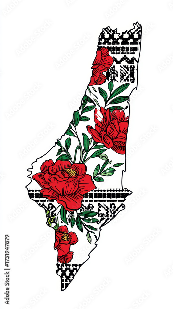 Artistic Floral Palestine Map With Keffiyeh Pattern Wallpaper Mural - Decorly Solutions | Decorly Solutions