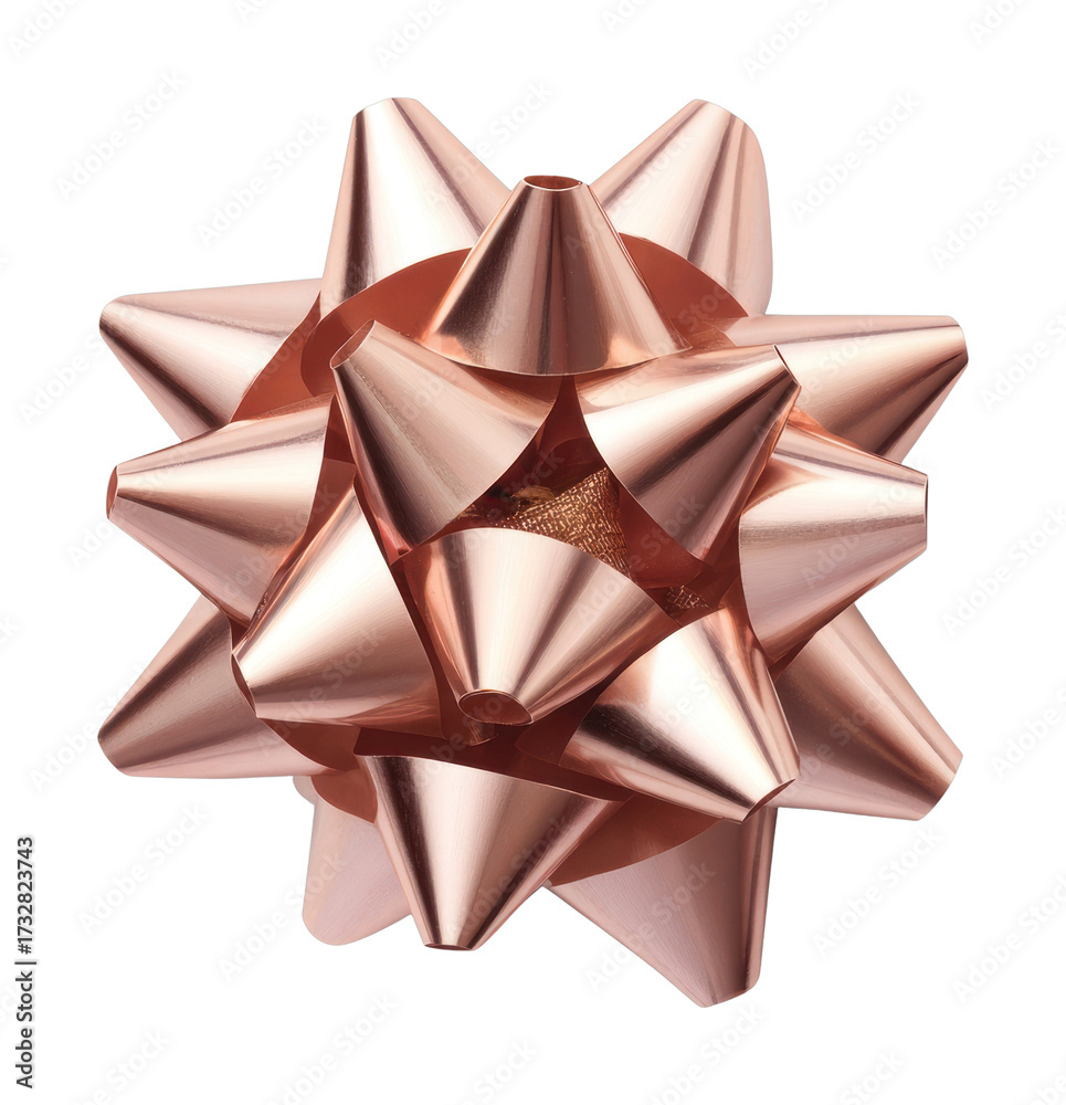 Shiny Decorative Gift Bow in Golden Color with Unique Petals Arranged in a Star Shape on a White Background for Holiday or Celebration Themes