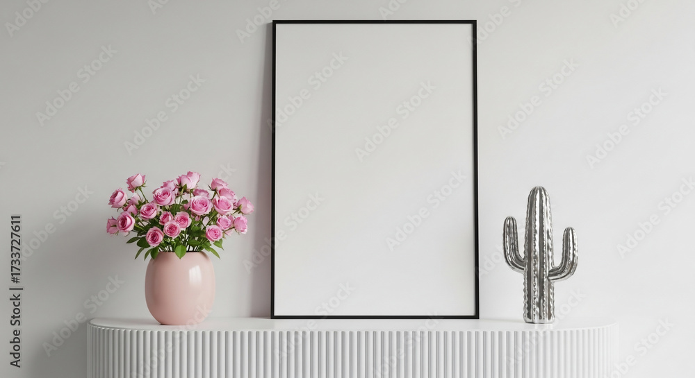 Blank Picture Frame Pink Flowers Silver Cactus On Wallpaper Mural - Decorly Solutions | Decorly Solutions