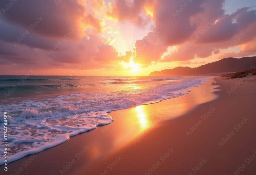 Vibrant Serene Beach Sunset Drenched In Colorful Skies Wallpaper Mural - Decorly Solutions | Decorly Solutions