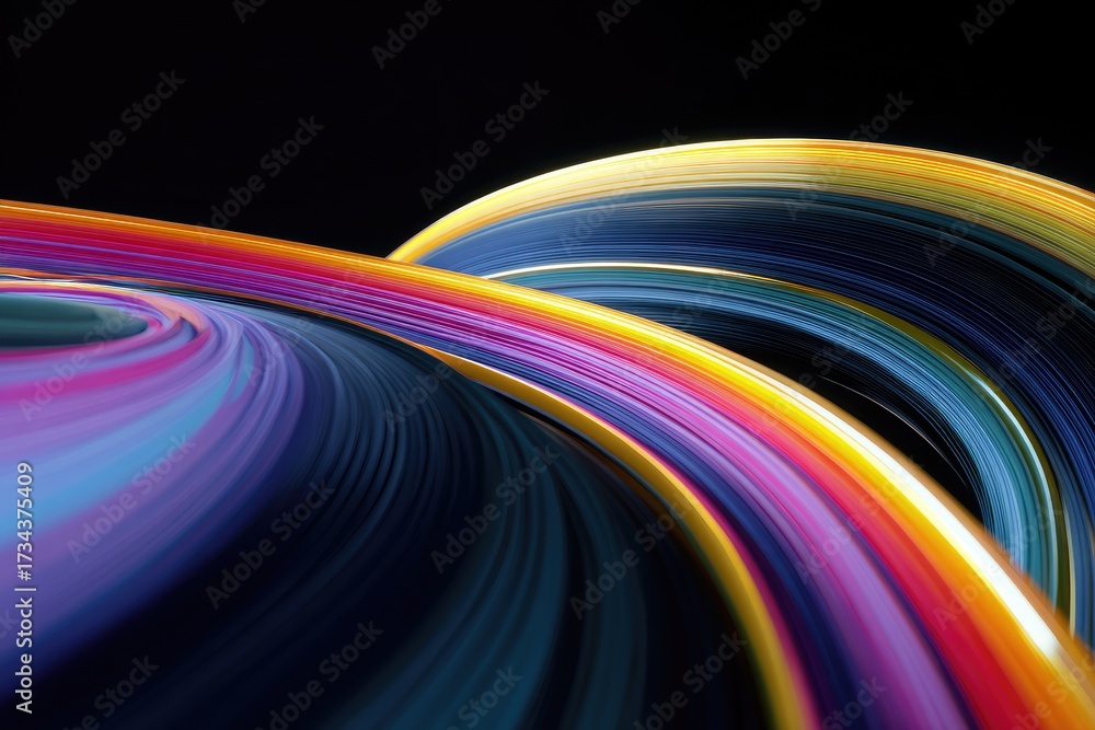 Swirling colorful ribbons flow against a dark backdrop creat Wallpaper