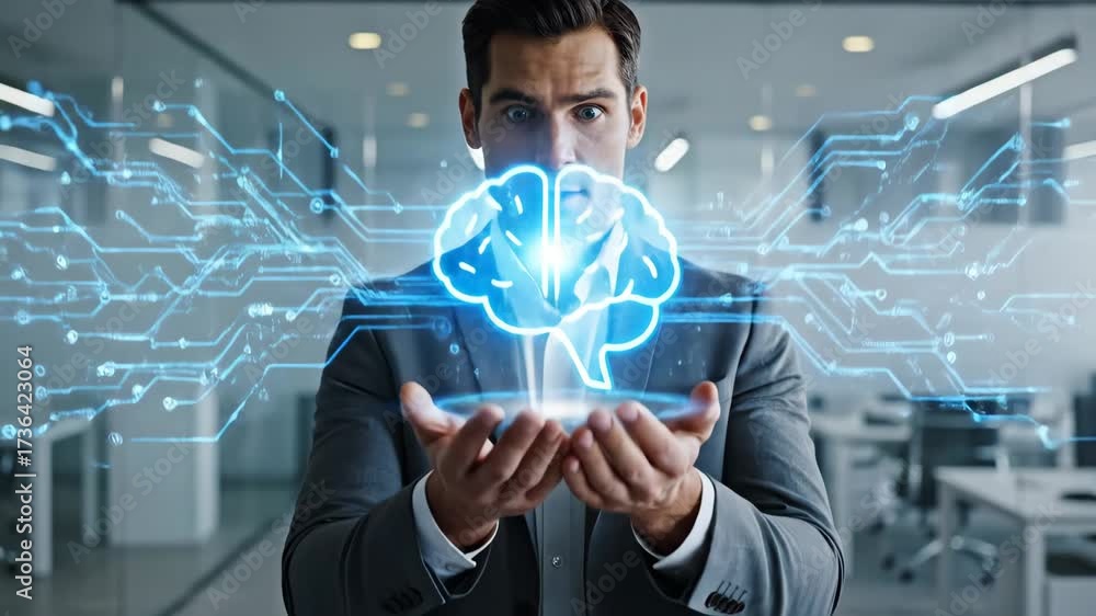 Businessman With Glowing Ai Brain Icon - A Wallpaper Mural - Decorly Solutions | Decorly Solutions