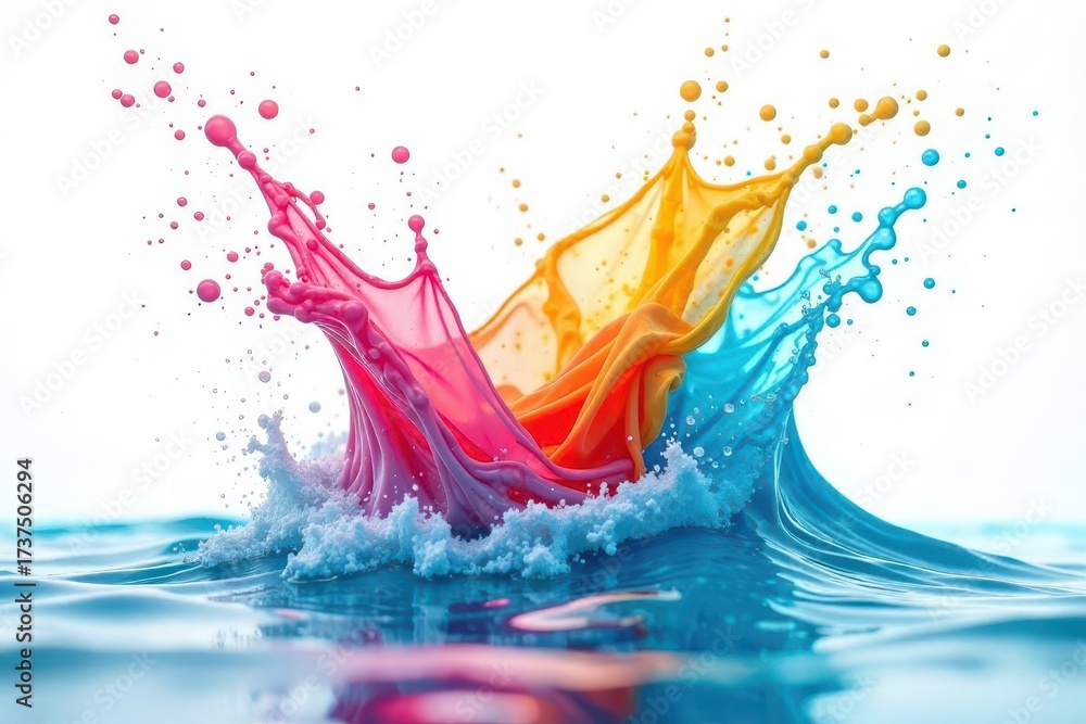 Vibrant Rainbow Paint Splash: Dynamic Fluid Art On White Background