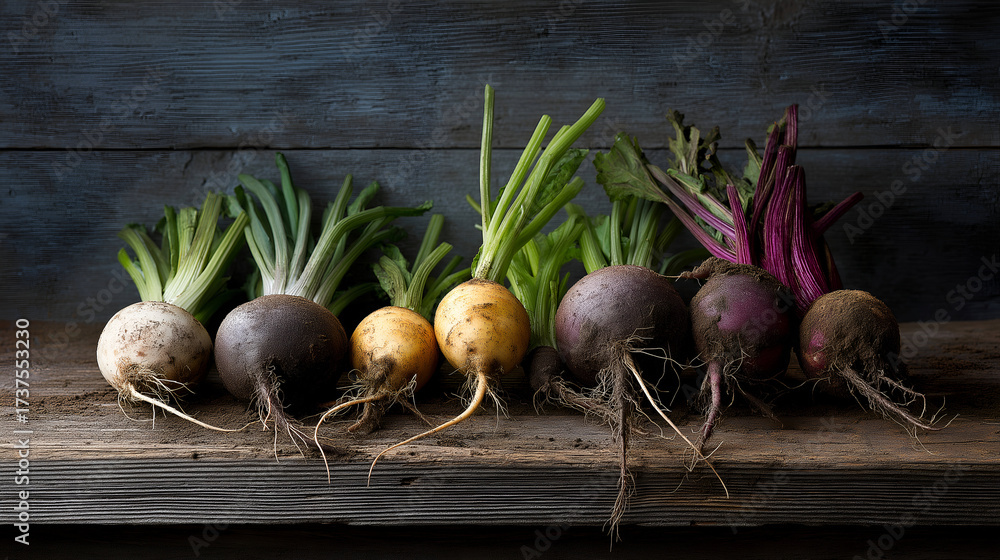 Assorted Fresh Beetroots With Green Tops And Dirt Wallpaper Mural - Decorly Solutions | Decorly Solutions