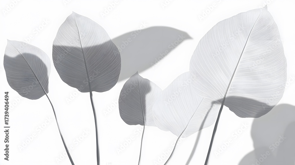Elegant Monochrome Leaves Botanical Illustration Wallpaper Mural - Decorly Solutions | Decorly Solutions