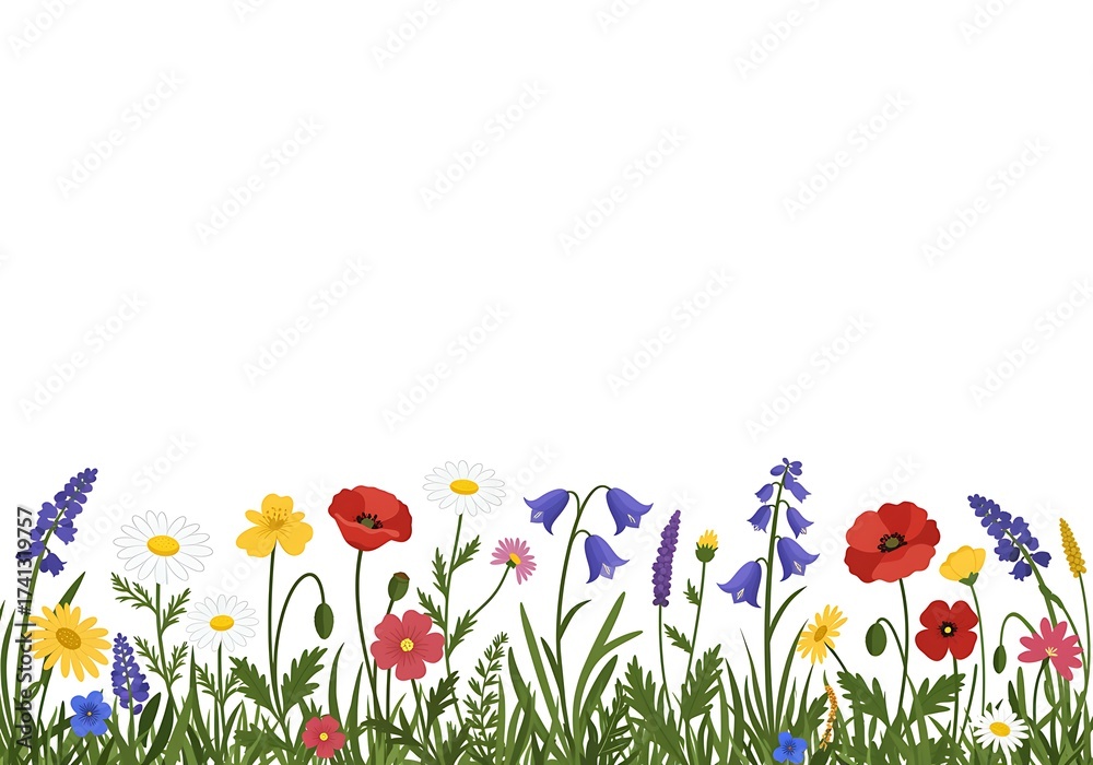 Watercolor Illustration Of A Vibrant Wildflower Meadow Border Wallpaper Mural - Decorly Solutions | Decorly Solutions