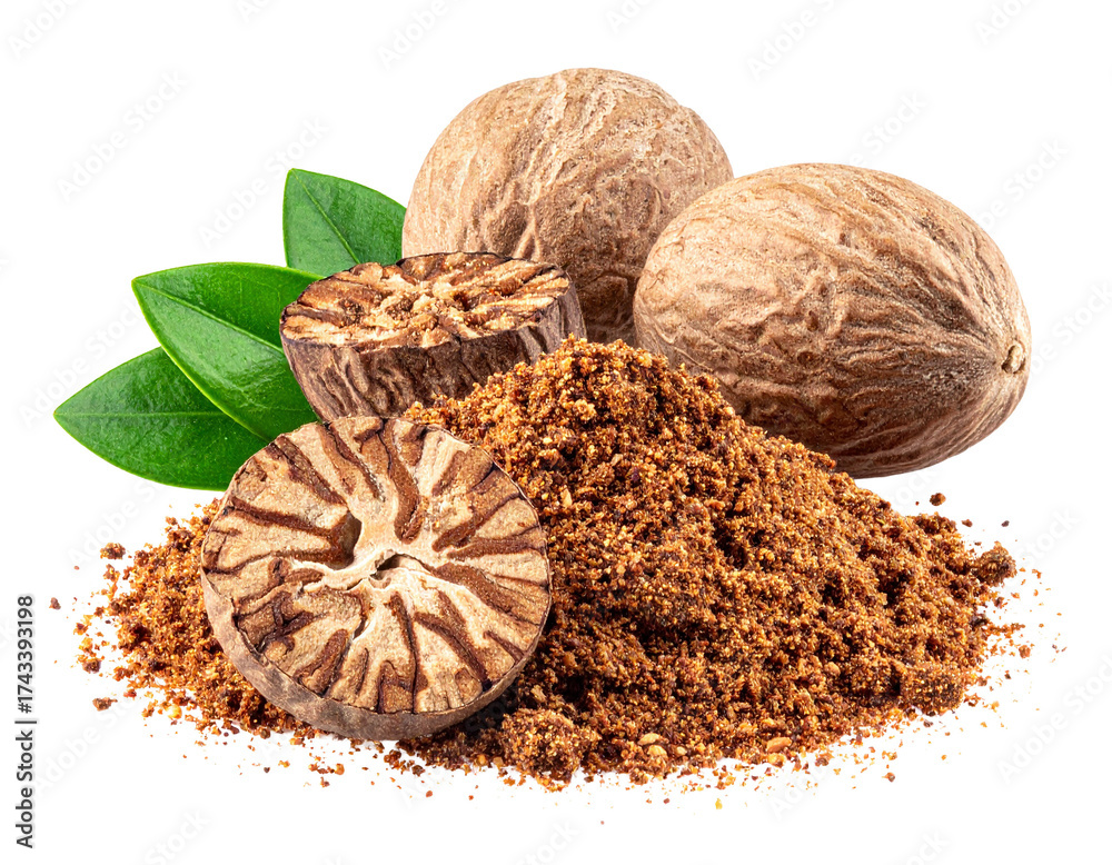 Ground Nutmeg Powder With Whole Nuts And Leaves Wallpaper Mural - Decorly Solutions | Decorly Solutions