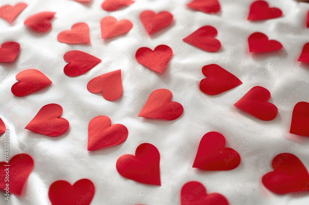White silk backdrop adorned with red heart motifs pattern fo Wallpaper